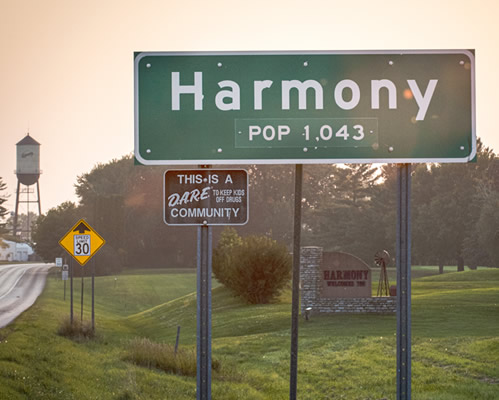 Harmony is located in the southeast corner of Minnesota and is within a days drive from many locations in the Midwest.